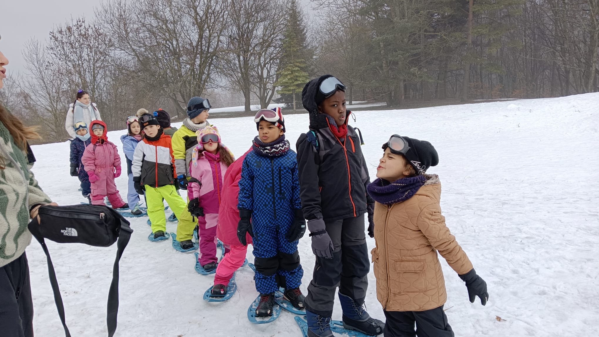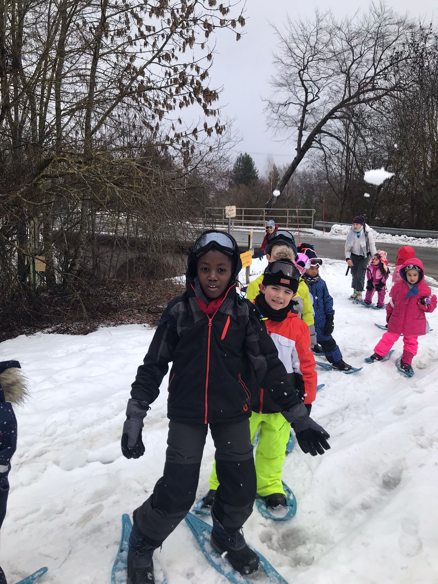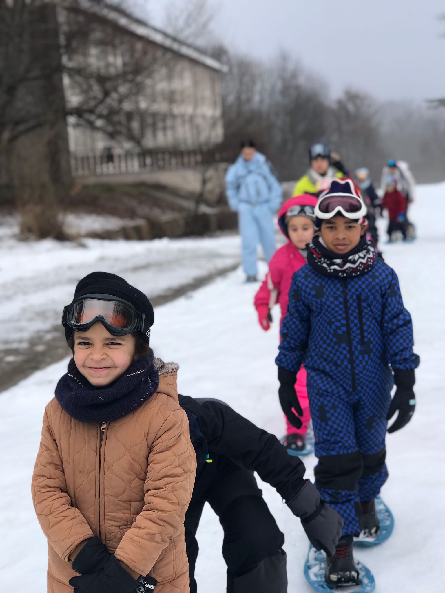 Après cette première nuit entre copains/copines, nous avons enfilés nos raquettes pour une balade contée en immersion dans les paysages enneigés autour du centre. L’après midi a pris un tournant givré pour retrouver notre poubelle dérobée par un bonhomme de neige farceur. La soirée s’annonce gourmande avec une veillée rallye chocolat