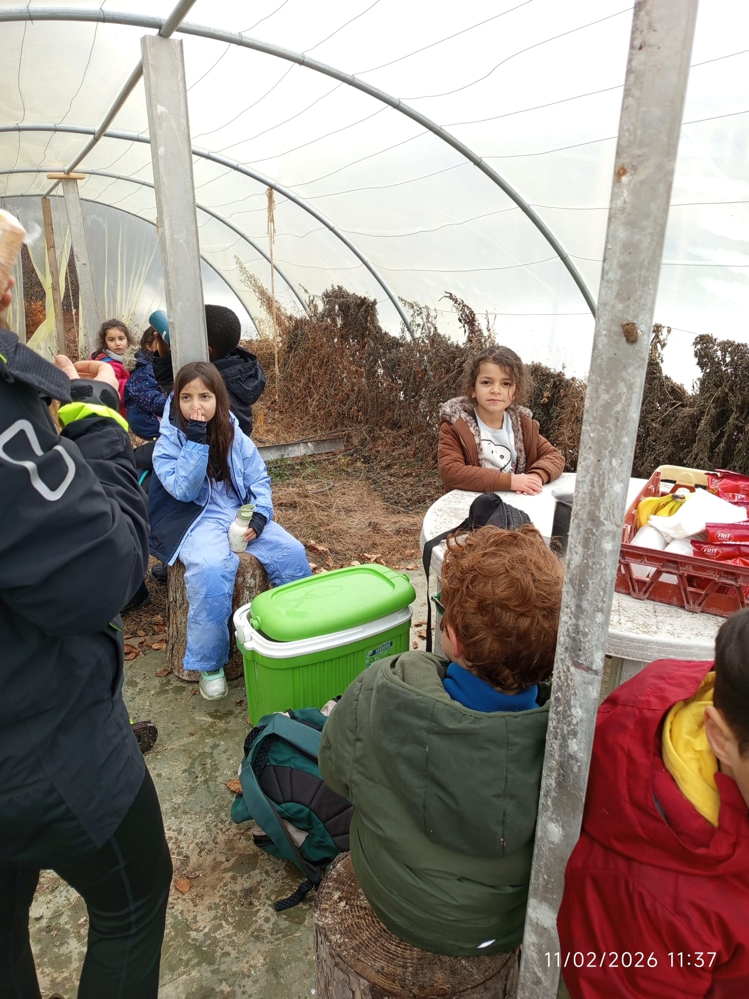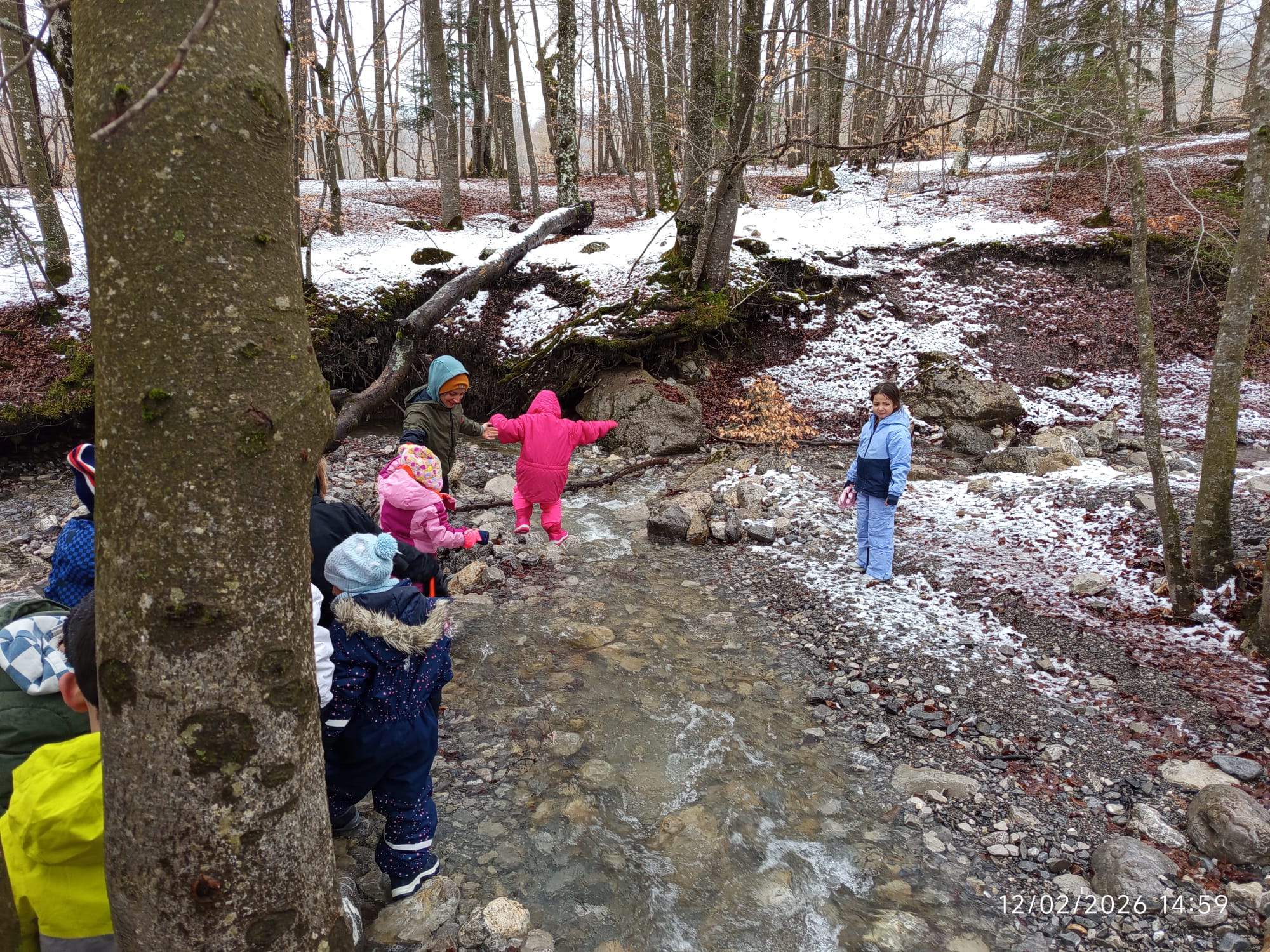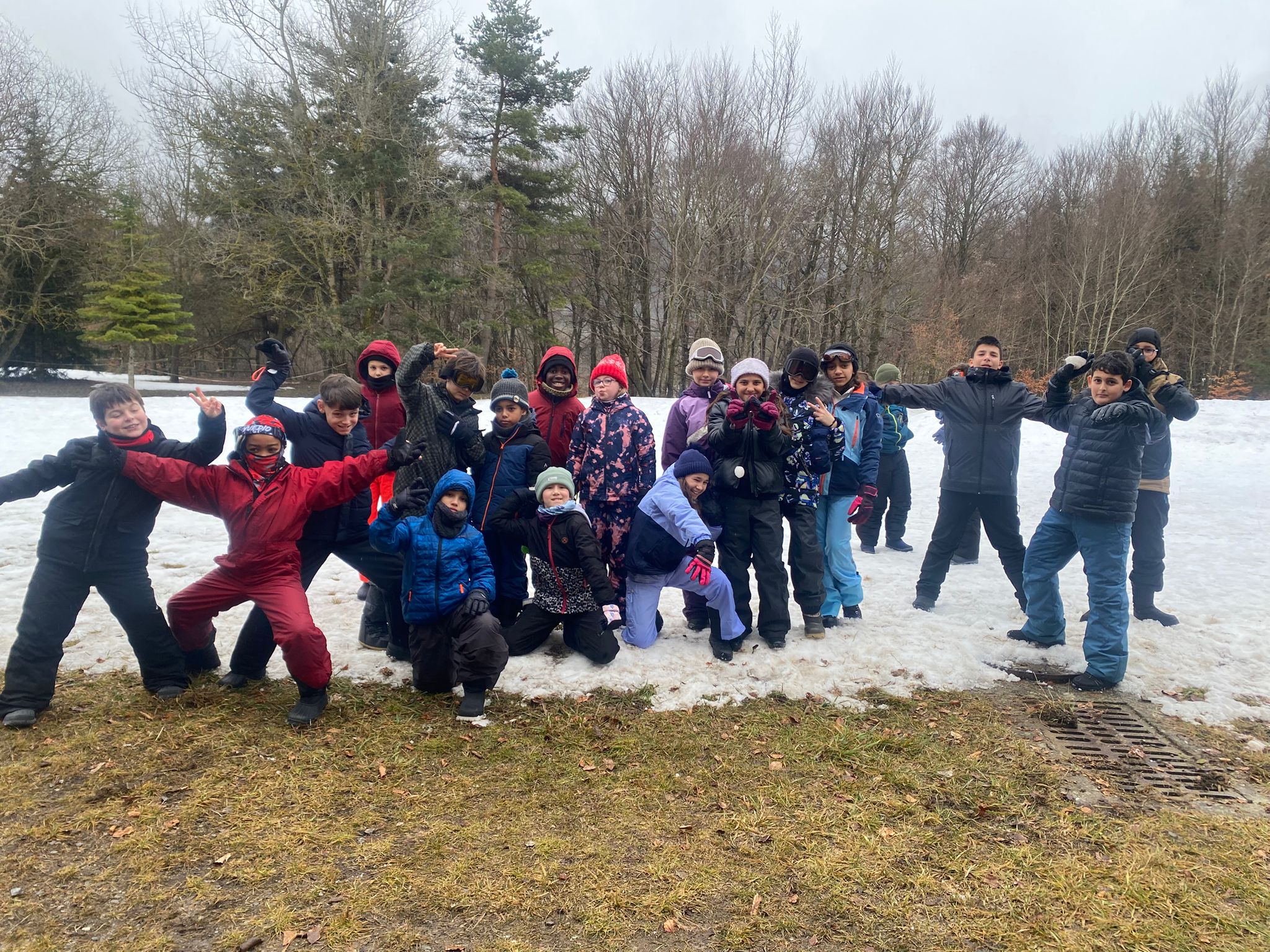 Après cette première nuit entre copains/copines, nous avons enfilés nos raquettes pour une balade contée en immersion dans les paysages enneigés autour du centre. L’après midi a pris un tournant givré pour retrouver notre poubelle dérobée par un bonhomme de neige farceur. La soirée s’annonce gourmande avec une veillée rallye chocolat