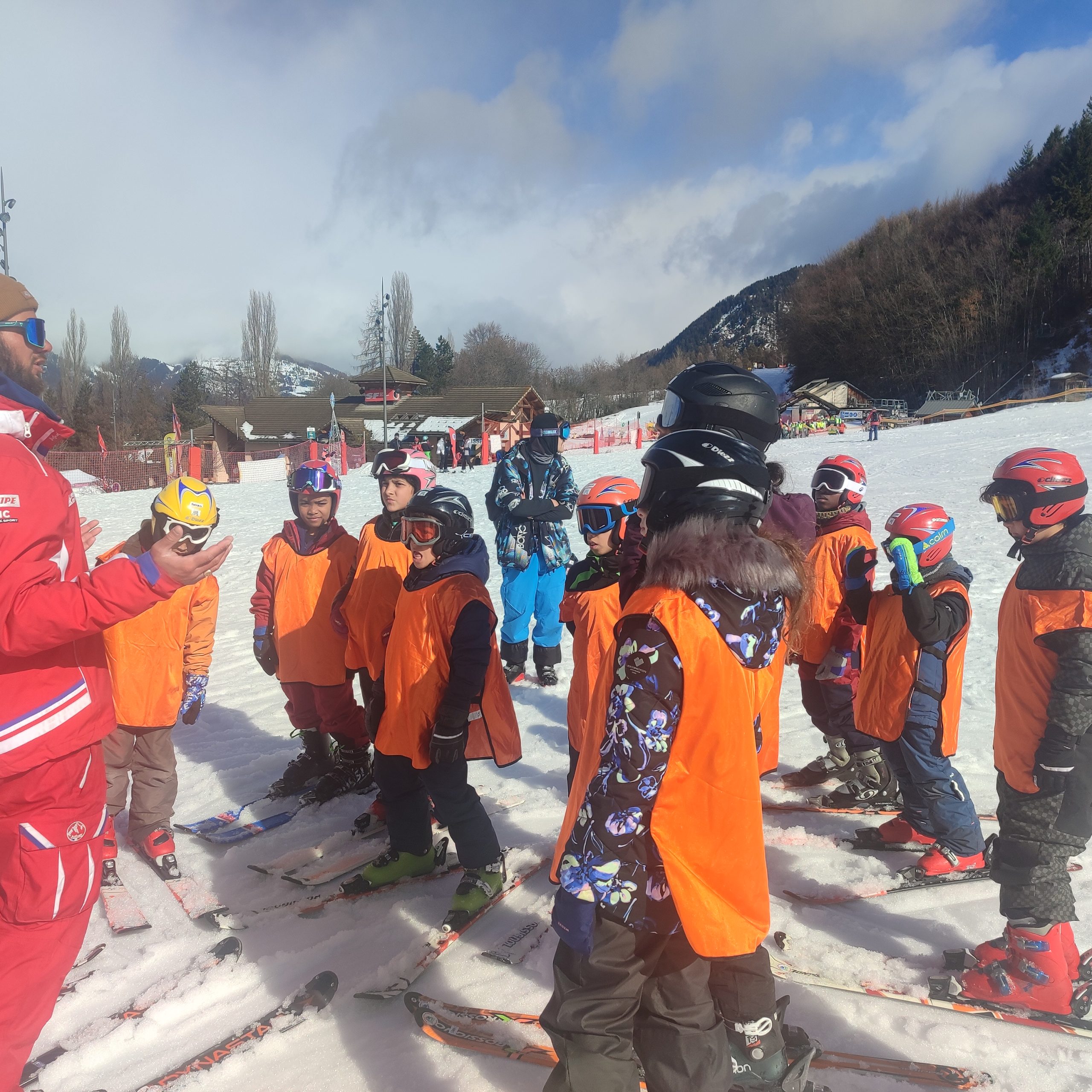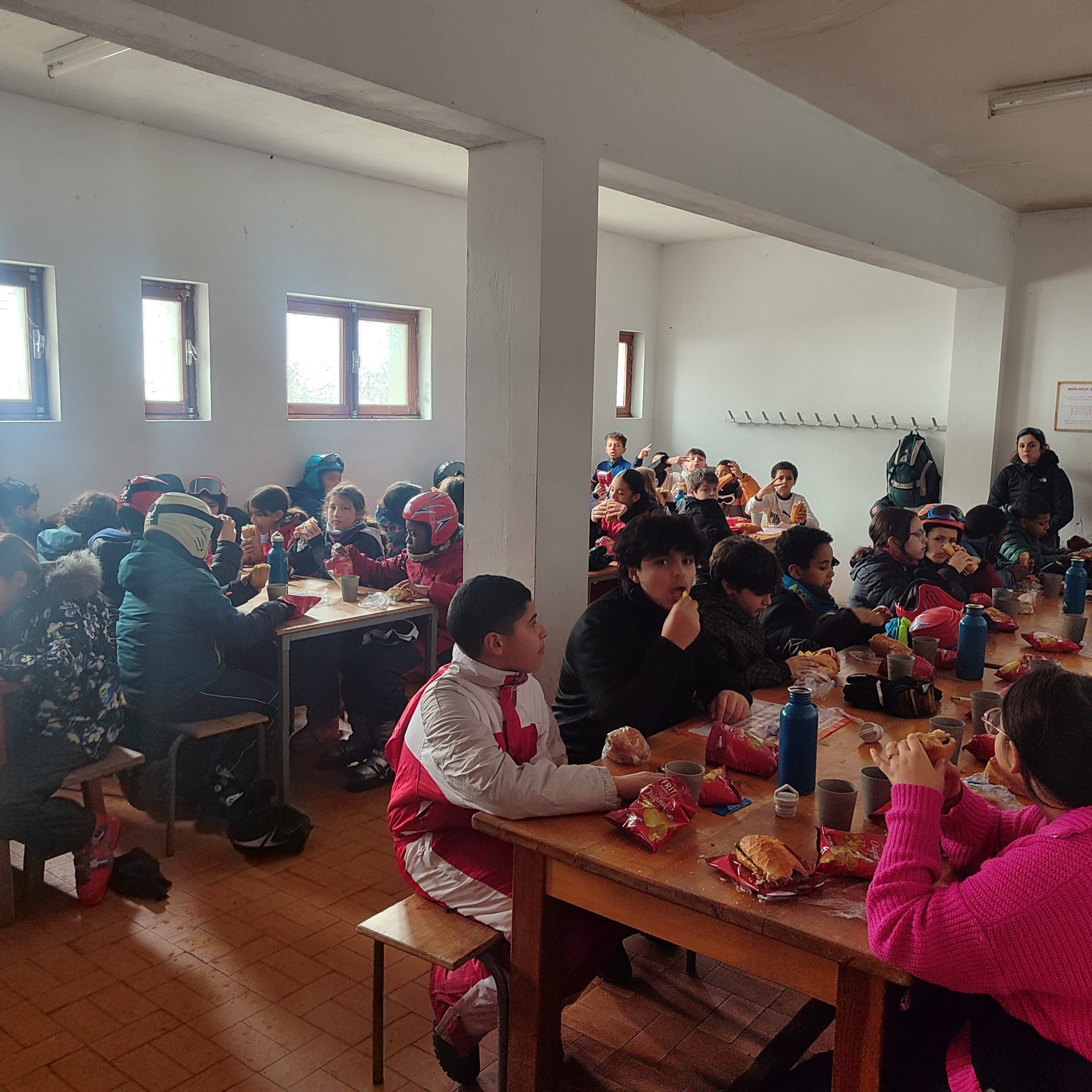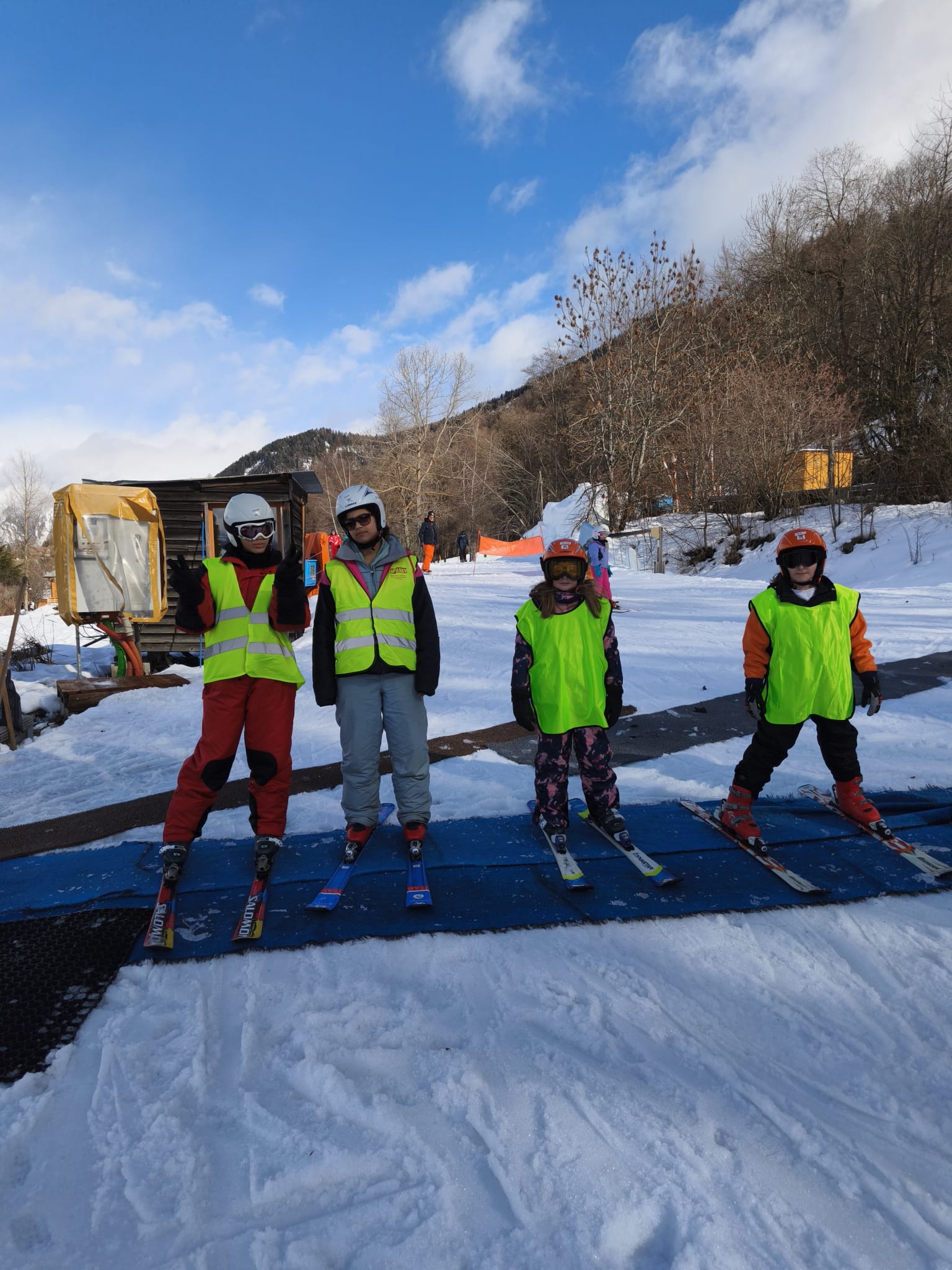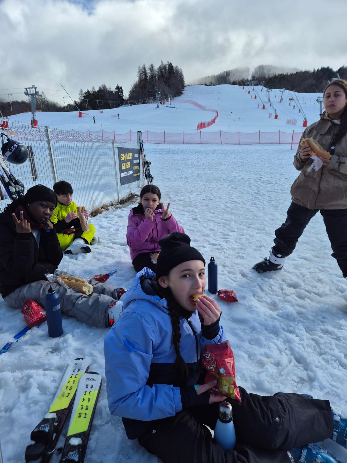 Tout d’abord, départ en bus ce matin après le petit déjeuner pour équiper l’ensemble du groupe. Nous avons ensuite pris le temps de pique niquer sur la station avant de rejoindre les pistes. L’ensemble du groupe a été pris en charge par des moniteurs ESF afin de faire progresser les enfants en fonction du niveau de chacun.
