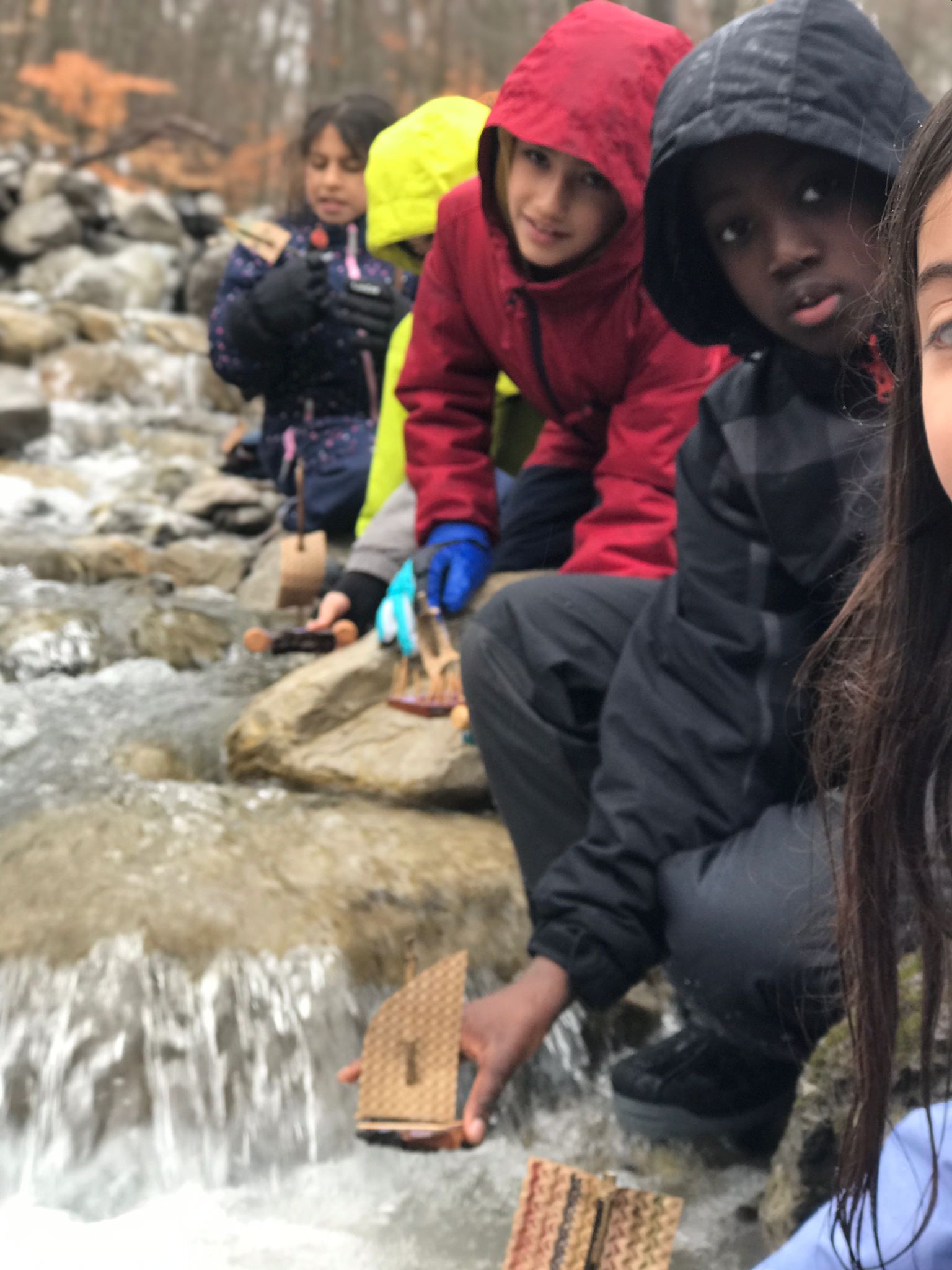 Aujourd’hui nos apprentis ingénieurs, ont confectionné de jolis bateaux pour une course sur le cours d’eau qui traverse le terrain du centre !